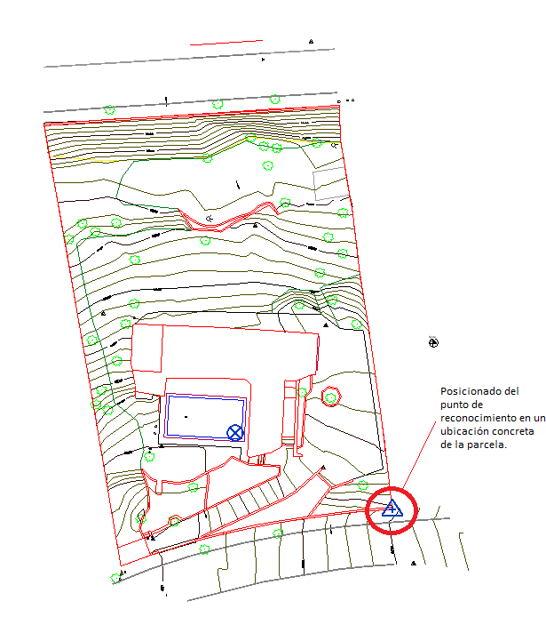A partir del CAD proporcionado por el topógrafo se estableció situar el punto de reconocimiento en uno de los vértices de la propiedad o parcela.