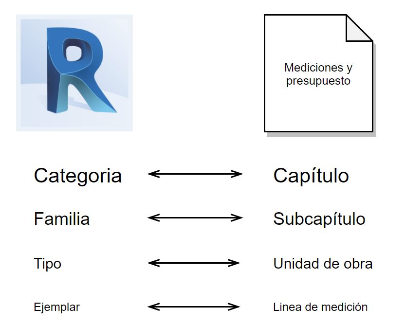 Esta equivalencia entre la estructura de Revit y el documento tradicional de mediciones se podría resumir de la siguiente manera: