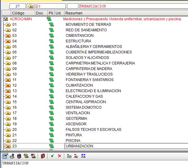 Los capítulos se corresponderían con el primer nivel de ordenación del documento. Normalmente los capítulos se crean con un criterio que agrupa unidades de obra pertenecientes a un mismo sistema del edificio y cuyas actividades podríamos considerar que son una especialidad profesional concreta.