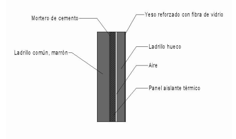 En el siguiente ejemplo se muestra la descripción de los materiales de cada una de las capas que conforman el muro: