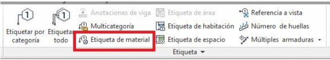 Con esta herramienta vamos a poder extraer todas la información asociada al material o materiales asignados al elemento que queramos identificar. Dicha información se recoge en el explorador de materiales del proyecto, en la pestaña correspondiente a la identidad. También en esta familia de etiquetas va a ser frecuente el uso de parámetros compartidos que completen la información necesaria de los materiales usados en nuestro proyecto.