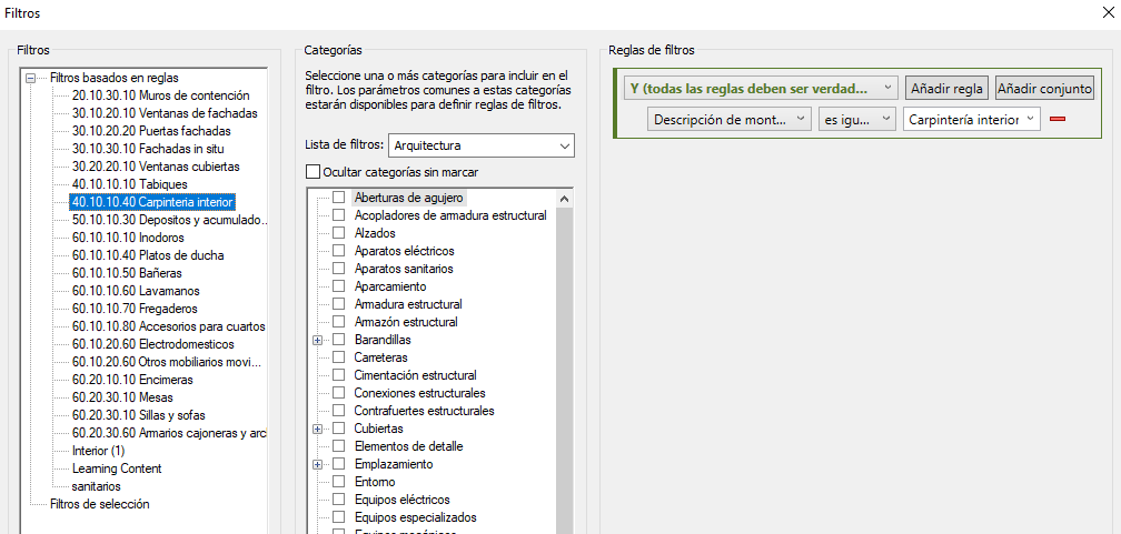 -Colección de filtros de Revit creados a partir de los parámetros de Assembly. Fuente: Elaboración propia- |