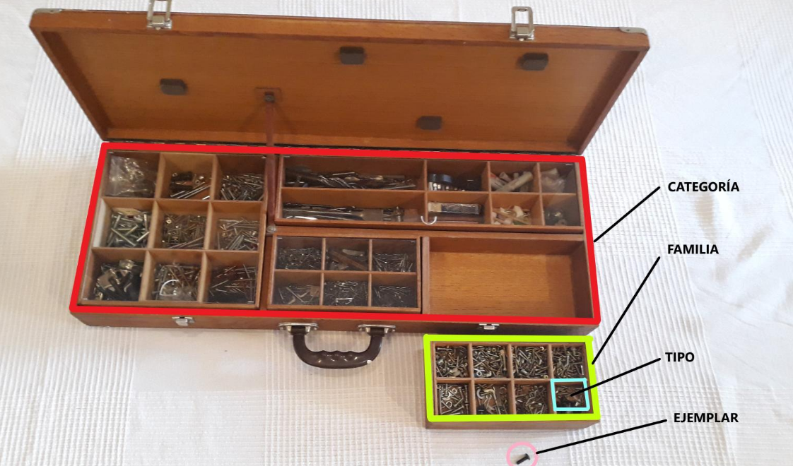 -Ejemplo visual de como se ordenan los elementos en Revit. Fuente: Elaboración propia (también la caja)- |