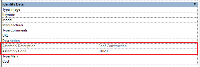 -Parámetros de tipo Assembly Code y Assembly Description en Revit. Fuente: Elaboración propia- |