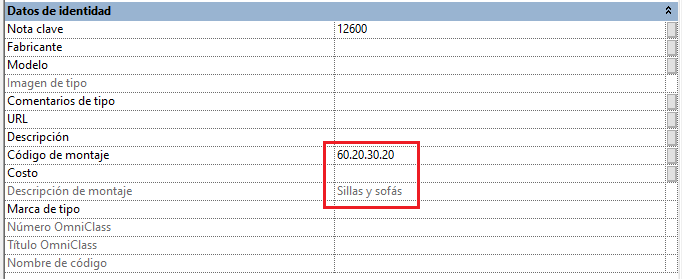 A partir de este momento, vamos a estar en disposición de asignar un código concreto a cada una de las familias de Revit que nos permitan establecer agrupaciones concretas que atiendan a este estándar de clasificación.