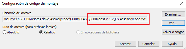 -Definición de ruta para la asignación del archivo guBIMclass dentro de Revit. Fuente: Elaboración propia- |