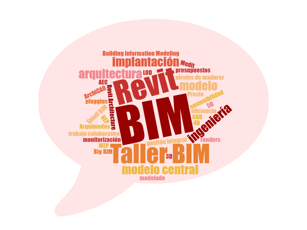Nube de palabras Taller BIM en forma de bocadillo de tebeo