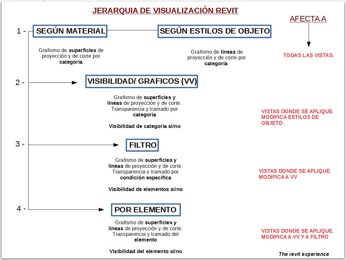 | Cuadro resumen de la jerarquía de visualización en REVIT |