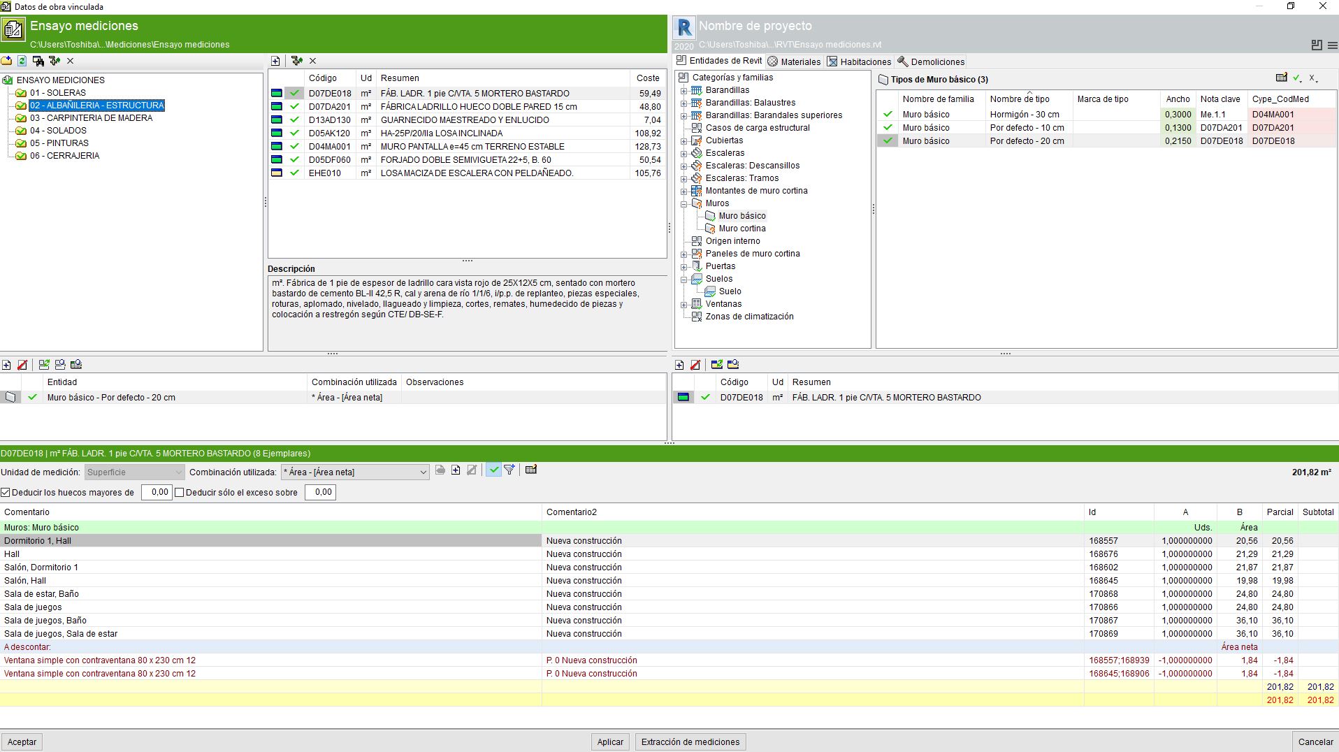 Cuando realizamos la extracción de mediciones de Revit a Arquímedes, el complemento identifica la fase a la que pertenecen los elementos a través de sus parámetros de ejemplar. El problema es que, cuando volcamos la información en Arquímedes, los elementos de un mismo tipo que han sido creados en distintas fases se ordenan agrupados en la misma unidad de obra, diferenciándose únicamente través del texto del comentario, aunque en realidad aplicándoles a todos los ejemplares las mismas condiciones de la partida, incluido el precio unitario. Esto es algo que en realidad nunca va a suceder, si estamos hablando de elementos que han sido demolidos y que por tanto se les tendrá que asignar una unidad específica que determine la actividad de esa partida presupuestaria y su precio unitario.