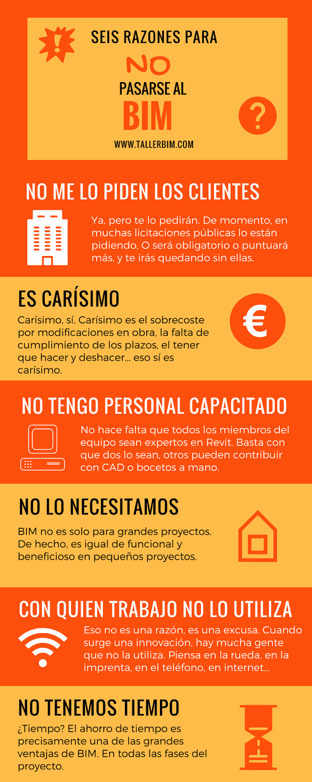 De los creadores de Cinco razones para pasarse al BIM, llega la segunda parte… Seis razones para NO pasarse al BIM. Os dejamos aquí la prometida infografía, que esperemos os guste: